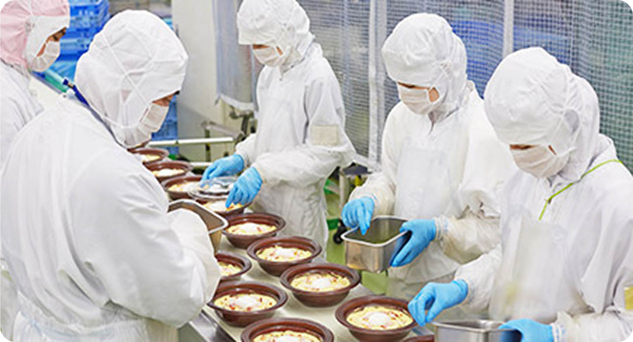 ベンダー事業を担うプライムデリカ株式会社は、大手コンビニ向け惣菜類の製造・販売を行っています。 関東から九州にかけて12ヶ所に工場を展開し、365日24時間体制で新鮮な商品を生産。 商品の安定供給およびお客様を飽きさせない商品づくりをするために、プリマハムグループ全体での結びつきを強化し、調達力やマーケティング力のシナジーを高めることで、変化するニーズに迅速に対応しています。