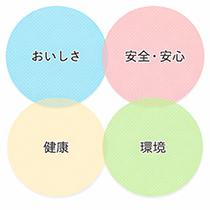 「おいしさ」、「安全・安心」、「健康」、「環境」
