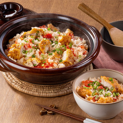 炊飯器を使ったほったらかしレシピ!フライドチキンは骨なしを使うことで、ほぐすときも手間がかかりません。しっかり味のついたフライドチキンは食べ応え抜群。トマトの酸味がフライドチキンの濃厚な味をさっぱりとまとめるとともに、炊き上がりの鮮やかな赤色は、食卓に華を添えてくれます。炊飯時の味付けも塩だけなので、簡単で失敗しないのが嬉しいポイントです。