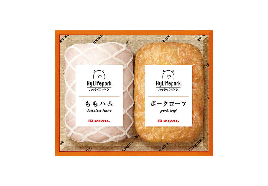 ¥4,800(税込価格 ¥5,184)ももハム400g、ポークローフ250g、あらびきウインナー130g×2