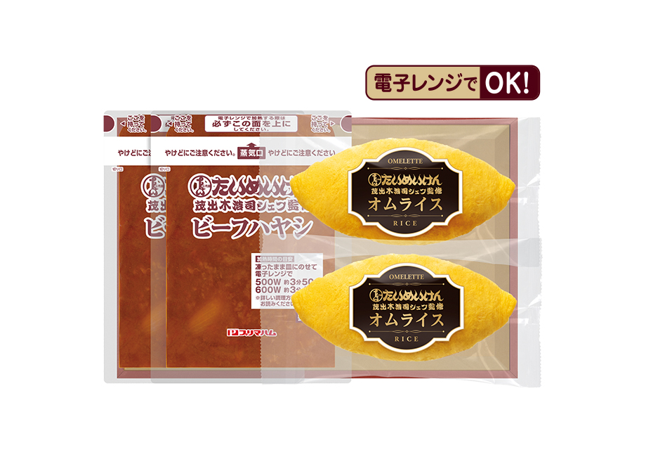¥3,000(税込価格 ¥3,240)オムライス 220g×2、ビーフハヤシ 150g×2