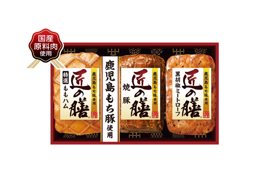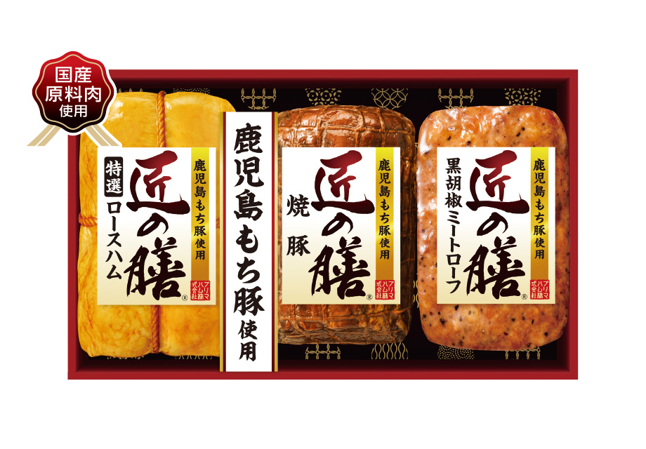 ¥5,000(税込価格 ¥5,400)特選ロースハム 350g、焼豚 200g、黒胡椒ミートローフ 170g