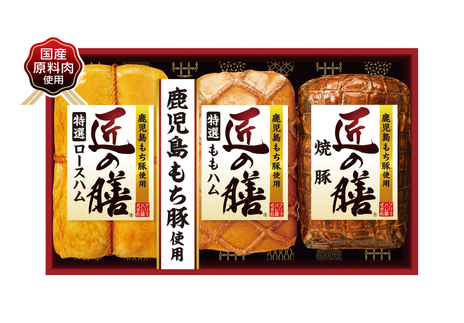 ¥6,000(税込価格 ¥6,480)特選ロースハム 350g、特選ももハム 230g、焼豚 200g
